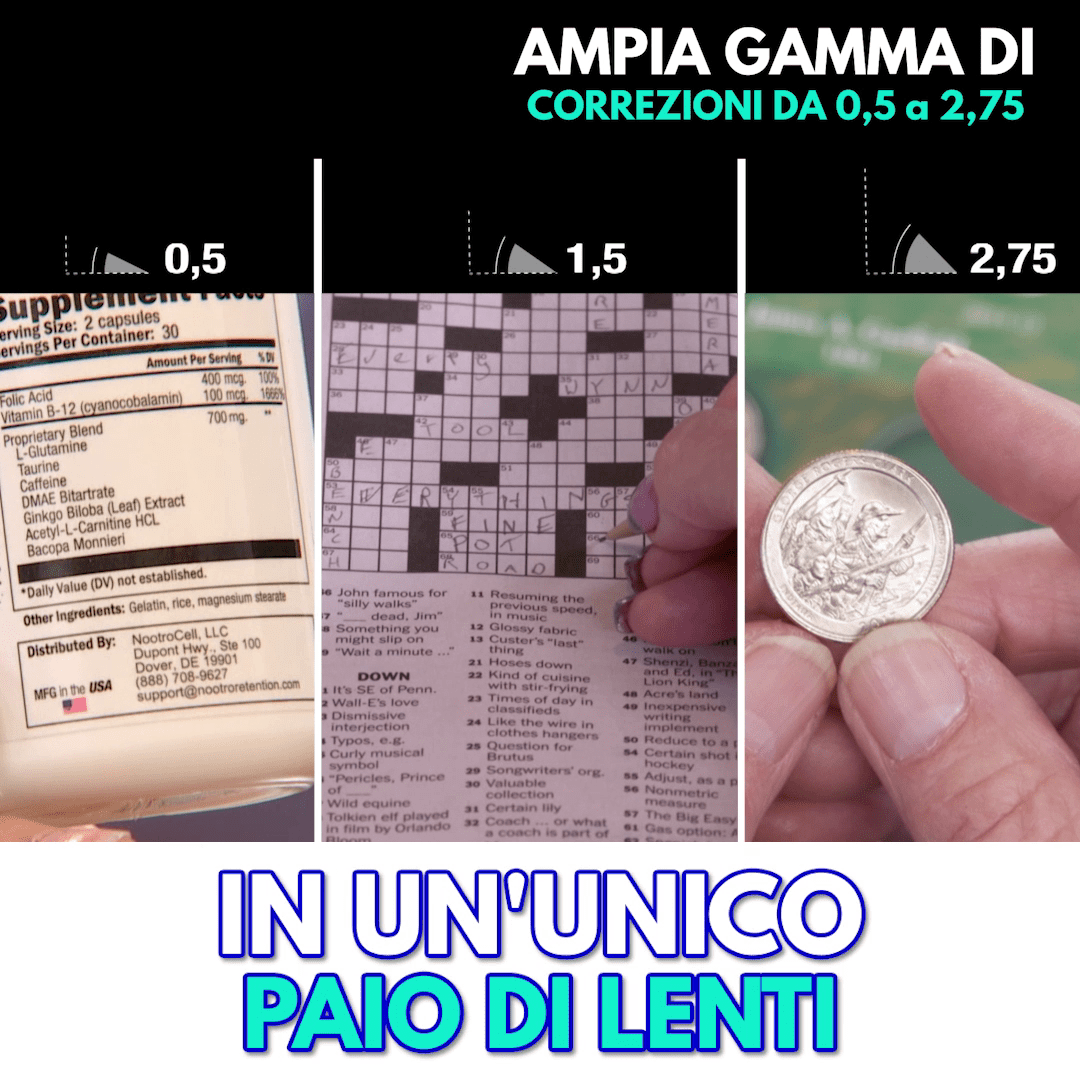 Gli occhiali OnePower Readers sono occhiali già pronti, con gradazioni da 0.5 a 2,75 che si autoregolano in base alle esigenze dei tuoi occhi per vedere bene sia da vicino che da lontano.